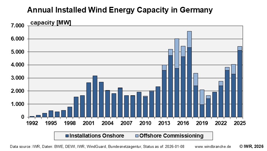 Münster (Germany) - The German wind energy market is on a growth trajectory in 2025. Over the full year, more than 5,400 MW (2024: 4,045 MW) of new wind power capacity were commissioned on a gross basis. The results of the latest onshore wind tender are contributing to the expectation that Germany’s expansion pace will remain on track in the coming years.